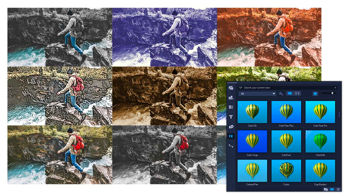 VideoStudio 因其趣味性和丰富的功能备受审阅者和编辑者认可,快来体验,制作让自己惊喜不已的佳作吧!使用基本视频校正和编辑工具以外的其他工具,将您的素材变身优质影片。使用运动效果为您的故事讲述增添戏剧化效果,使用分屏模板探索新的视角,并用绿幕效果将自己带到世界任何角落。甚至可以编辑 360 度视频!使用色彩校正控件增强您的素材效果,并利用 1500 多种效果,将您的日常奇遇真正转变为高质量的视频作品。拥有 VideoStudio 2020,您便拥有制作影片佳作和提升编辑技能所需要的一切工具。
