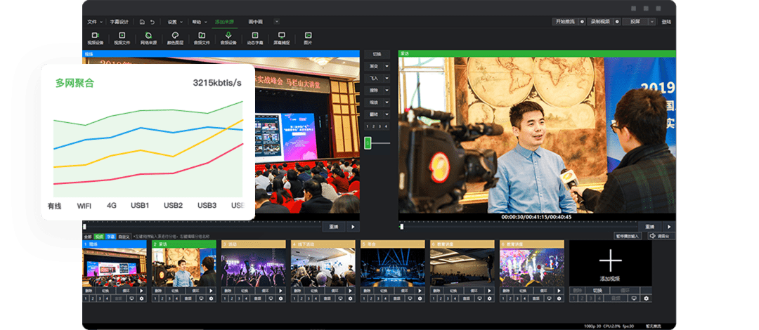 为直播提供高速可靠的网络保障,呈现更高清的直播画质!最多可支持多达16路网络聚合