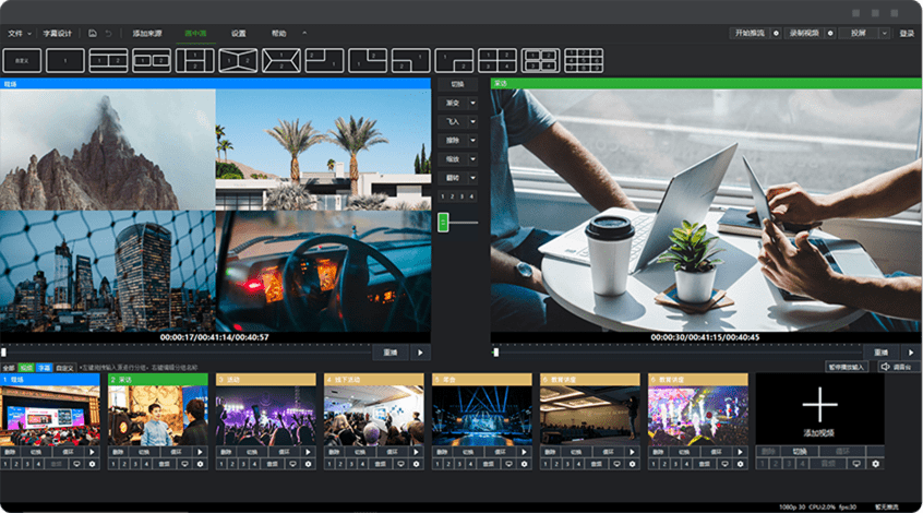 实时多路切换,画中画分屏,满足直播,录播使用场景