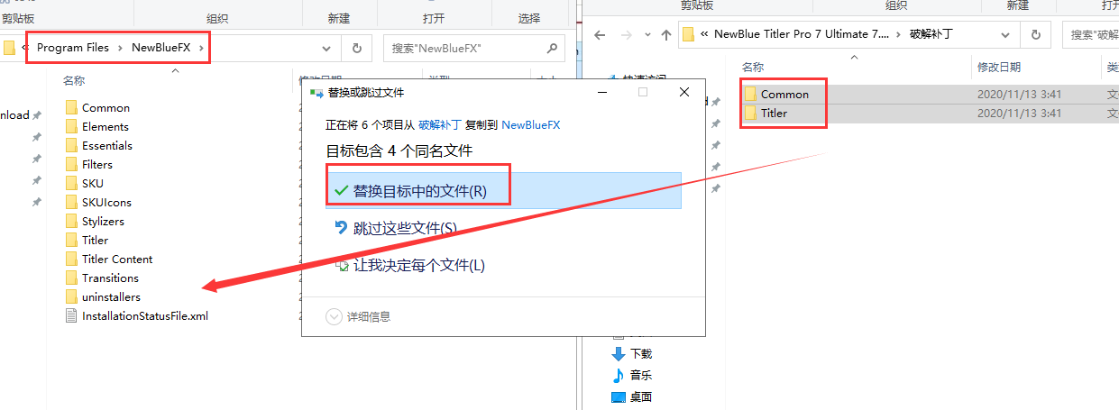 - 打开安装目录:C:\Program Files\NewBlueFX,将安装包的破解补丁全部复制到安装目录下替换